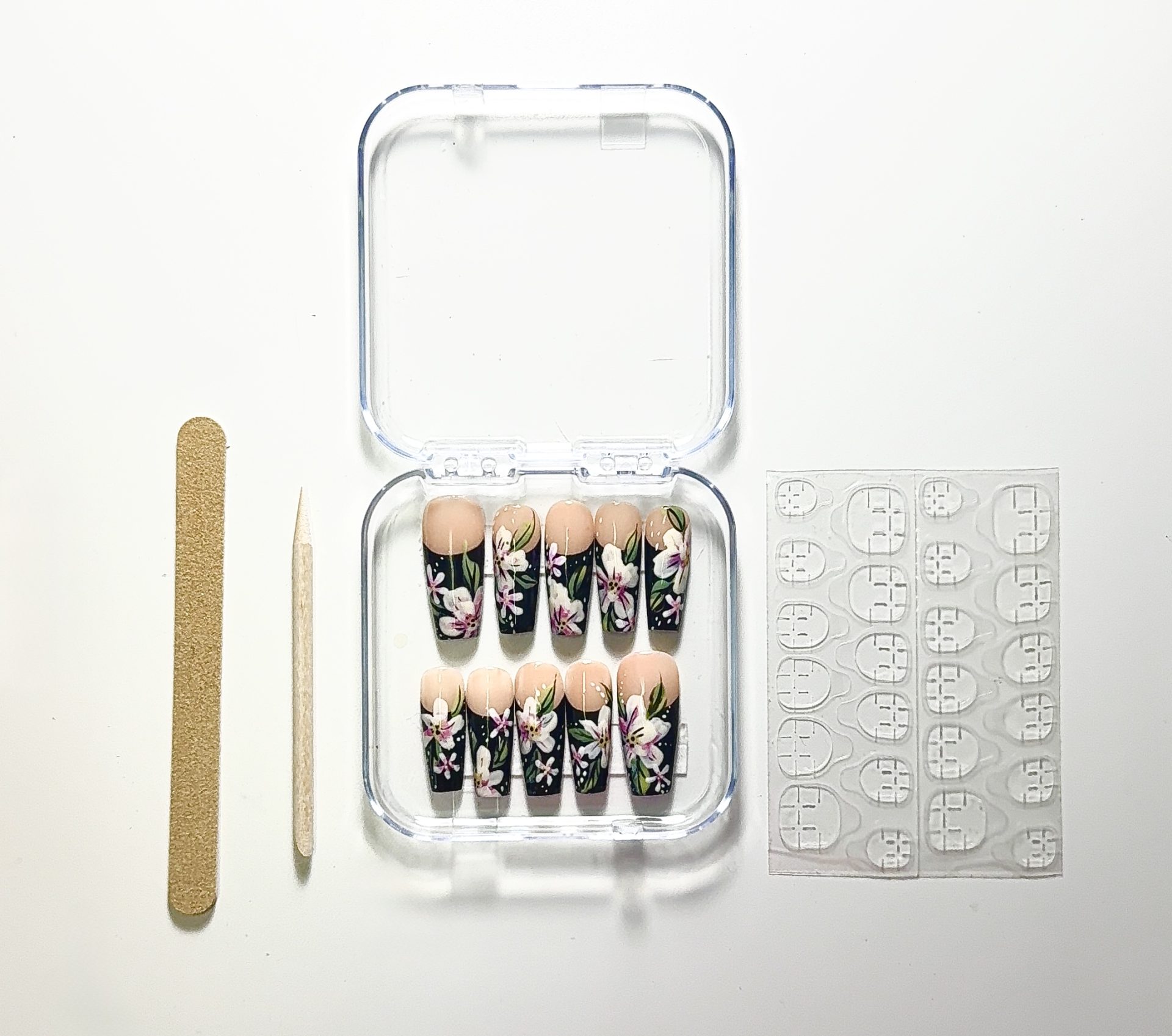 Our custom acrylic press-ons are individually sculpted and hand-painted by professional nail artists.